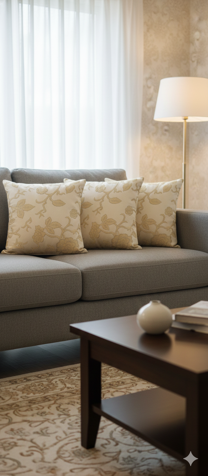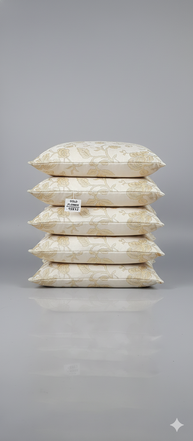 Gold Flower 12x12 Cream Brocade Cushion Cover Set (5 Pieces)