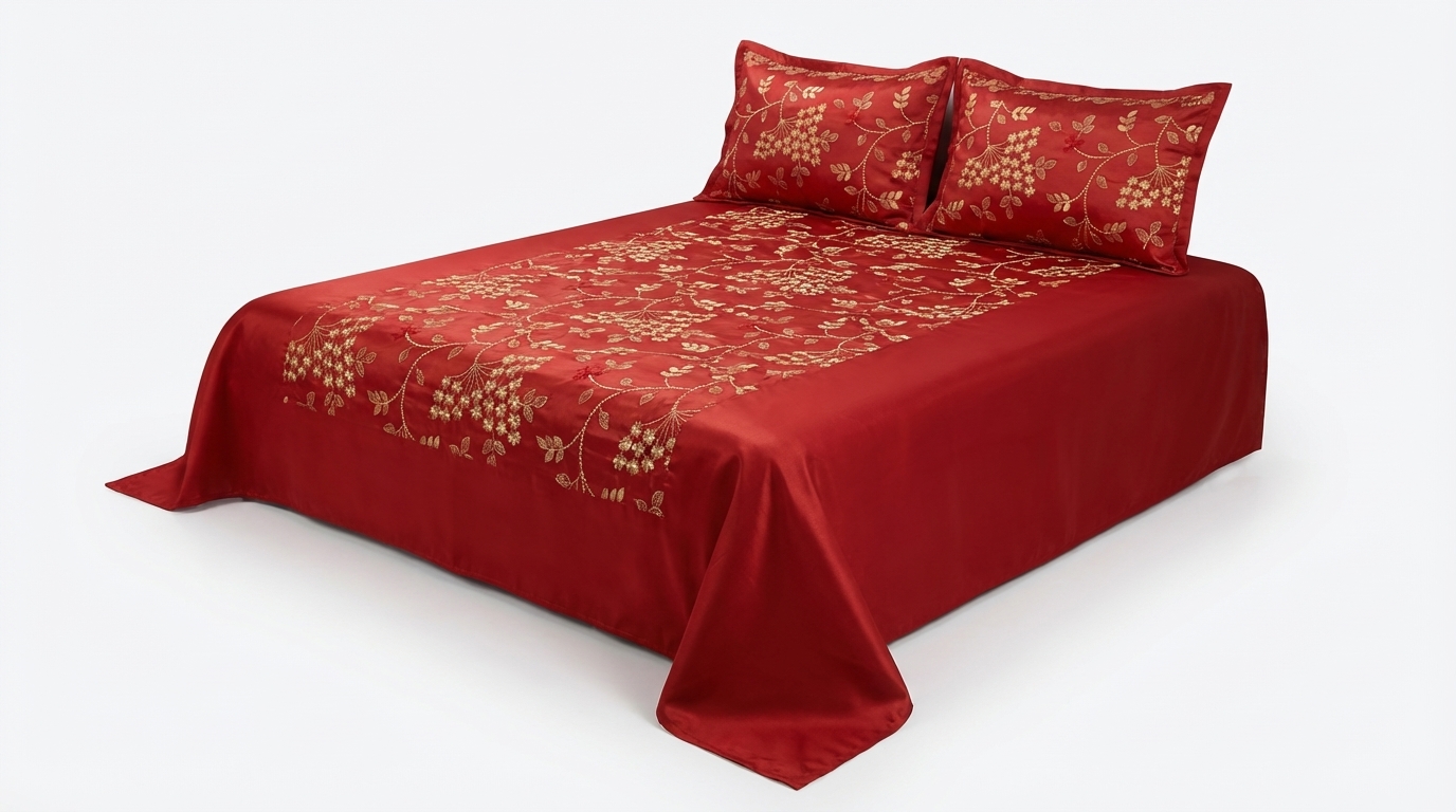 Premium Red Embroidered Cotton Satin King Bedsheet (108x108)