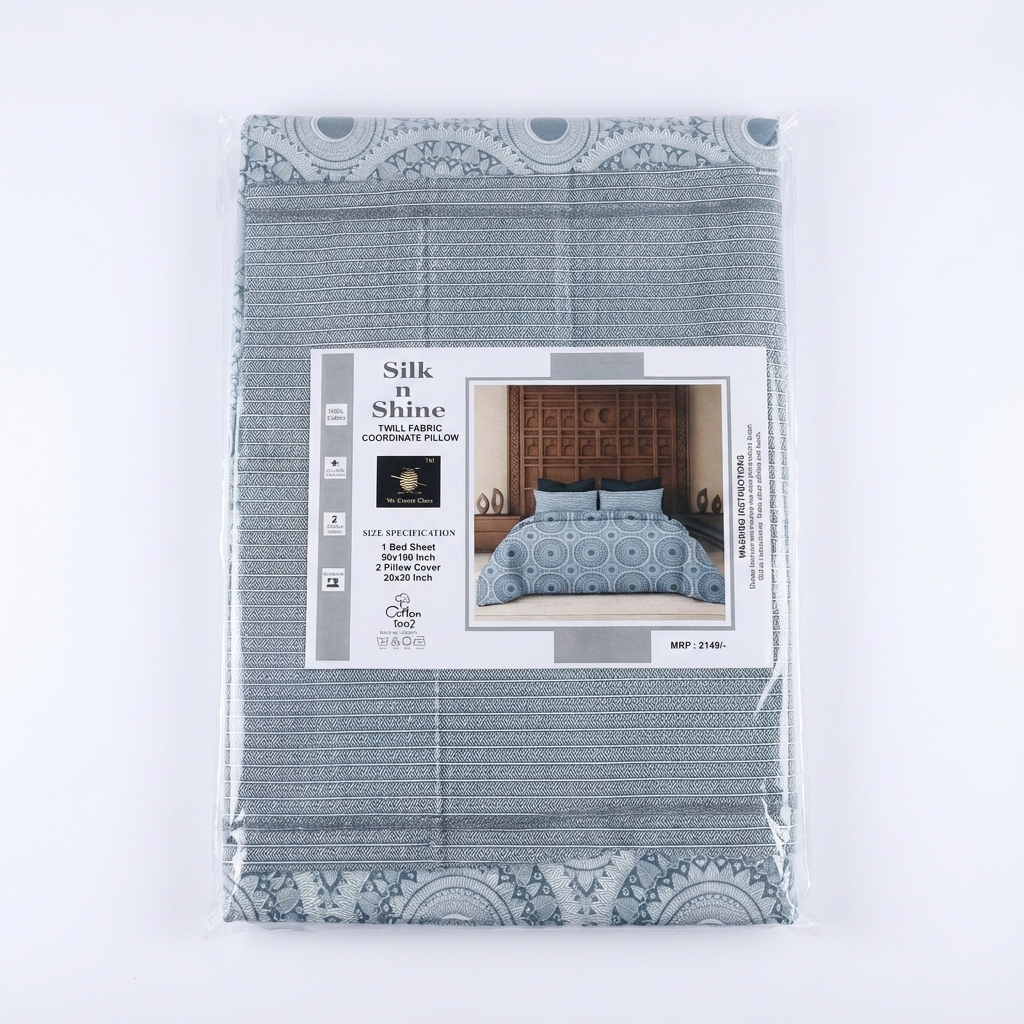 This complete bedding set includes one spacious double bedsheet measuring 90 x 100 inches, providing ample coverage for easy tucking, and two matching pillow covers (20 x 30 inches) to complete the look. With its precise quality stitching and premium finish, the Silk n Shine set is the perfect upgrade for your master bedroom or guest room.