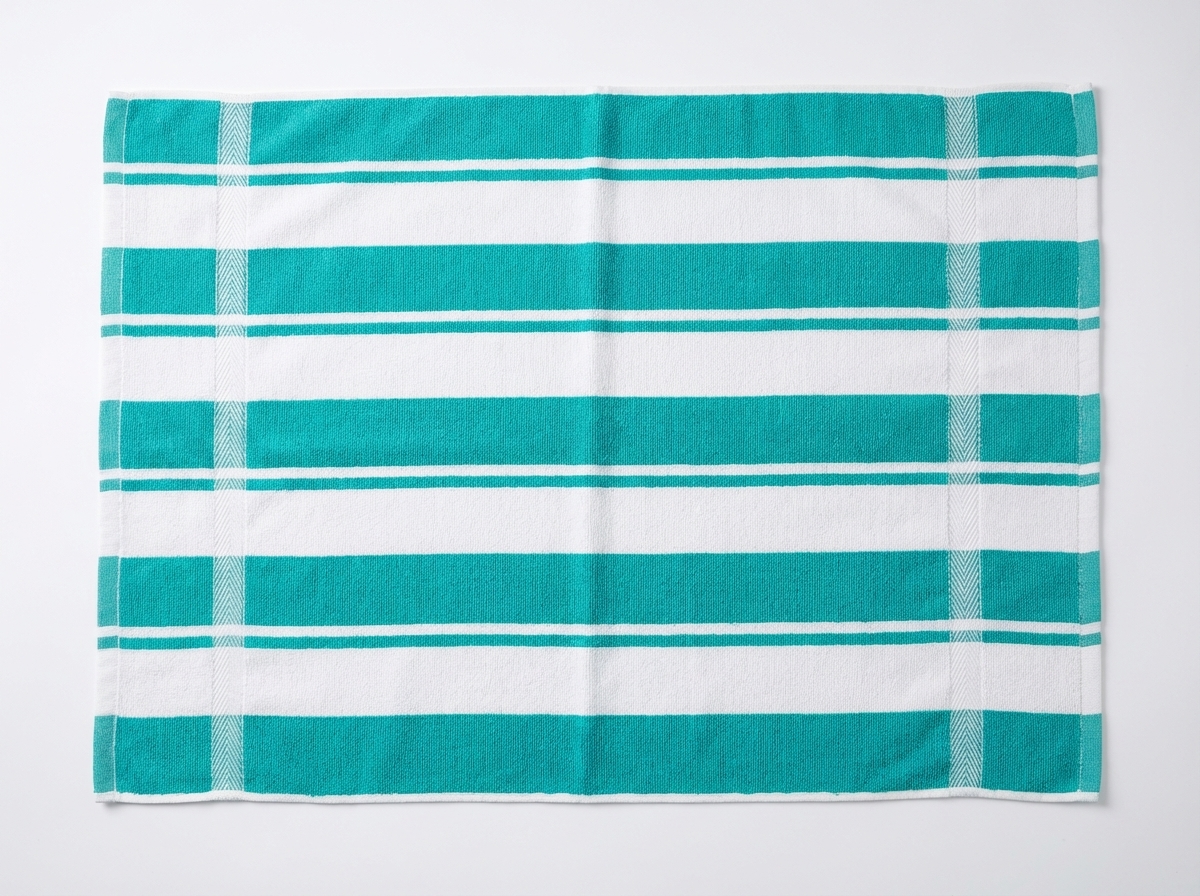 Elevate your daily bathing ritual with our Turquoise Striped Cotton Bath Towel, designed to bring a fresh, coastal vibe to your bathroom. This eye-catching towel features bold, alternating horizontal bands of vibrant turquoise and crisp white, accented by a distinct vertical herringbone weave that adds a unique texture and sophisticated finish.