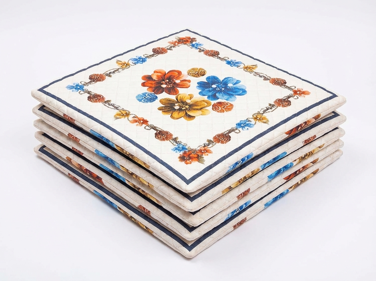 Vintage Floral Quilted Cushion Cover Set of 5 (16x16")