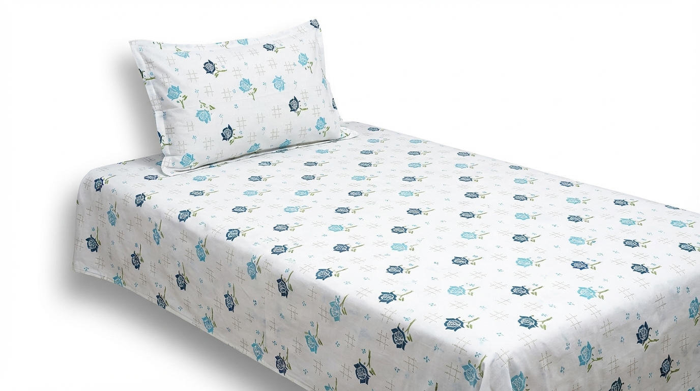 Wonder Blue Floral Glazed Cotton Single Bed Sheet Set